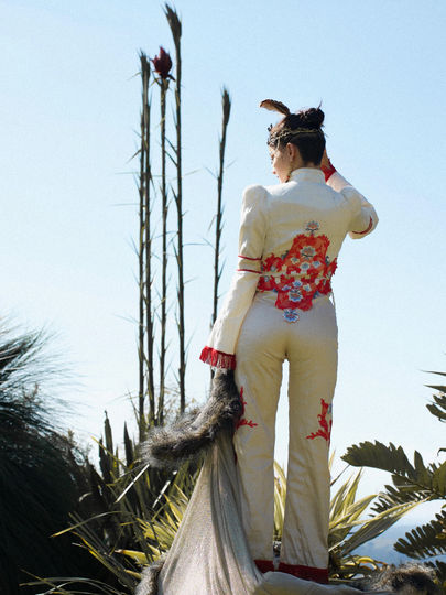 It has a Postmodern touch with my use of symbols, I feel as though I’m appropriating iconic royal attire and re-contextualising it to fit my aesthetics. For example the cross on the head piece represents the crucifixion of old ways.